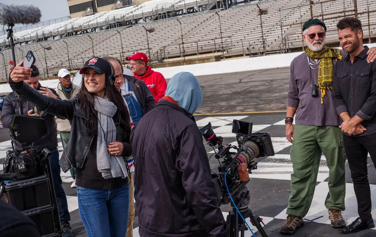 Actress and producer Ashley Elaine takes a selfie Thursday, April 27, 2023, on set at Lucas Oil Indianapolis Raceway Park during the last day of filming for Mayberry Man, a comedy series based on "The Andy Griffith Show."